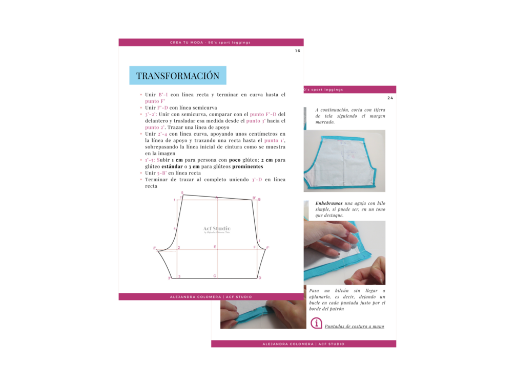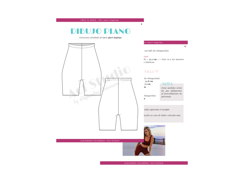 Ebook de “Crea Tu Moda” donde se enseña a realizar el patronaje y la posterior confección del 90’s sport leggings. Pantalón leggings deportivo para gimnasia, aerobic o vestir inspirado en los años 90 y 00.
